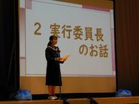 第1部にとして、閉校(記念)式典が行われました。本校第1回目の卒業生の校友会長より本校の歴史についての講話を頂戴した後、PTA会長からの御挨拶、そして今の平中で学校生活を日々送っている生徒からの「私たちの歩み」のスライド発表や会場に集った皆様と一緒に校歌を斉唱する等、歴史と伝統を刻んでいただく時間となりました。